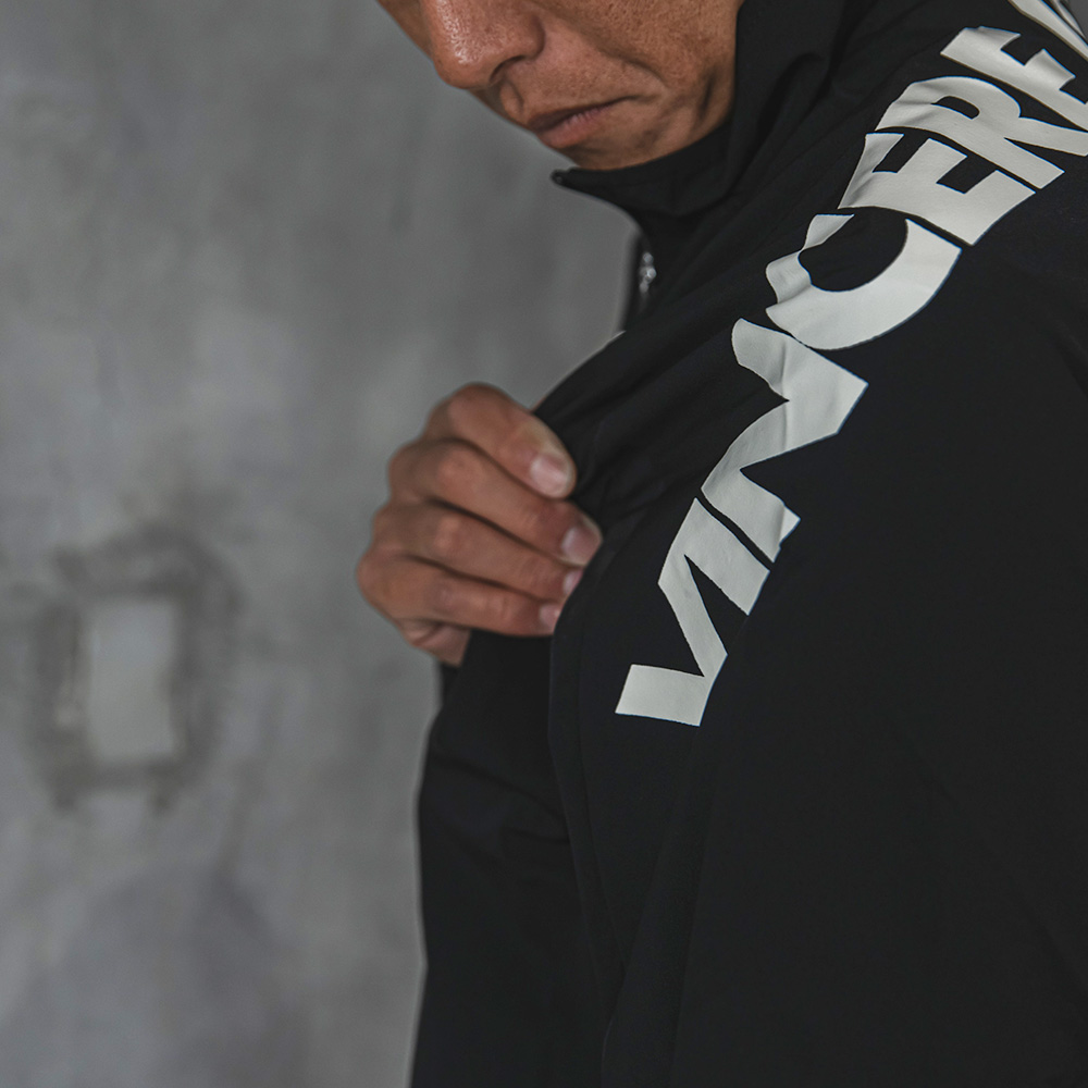 スマートなシルエットにテキストアートを加えた4WAYジャージで