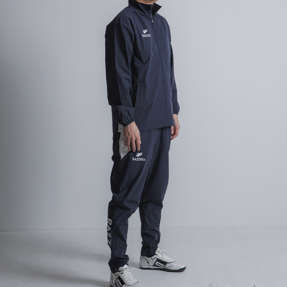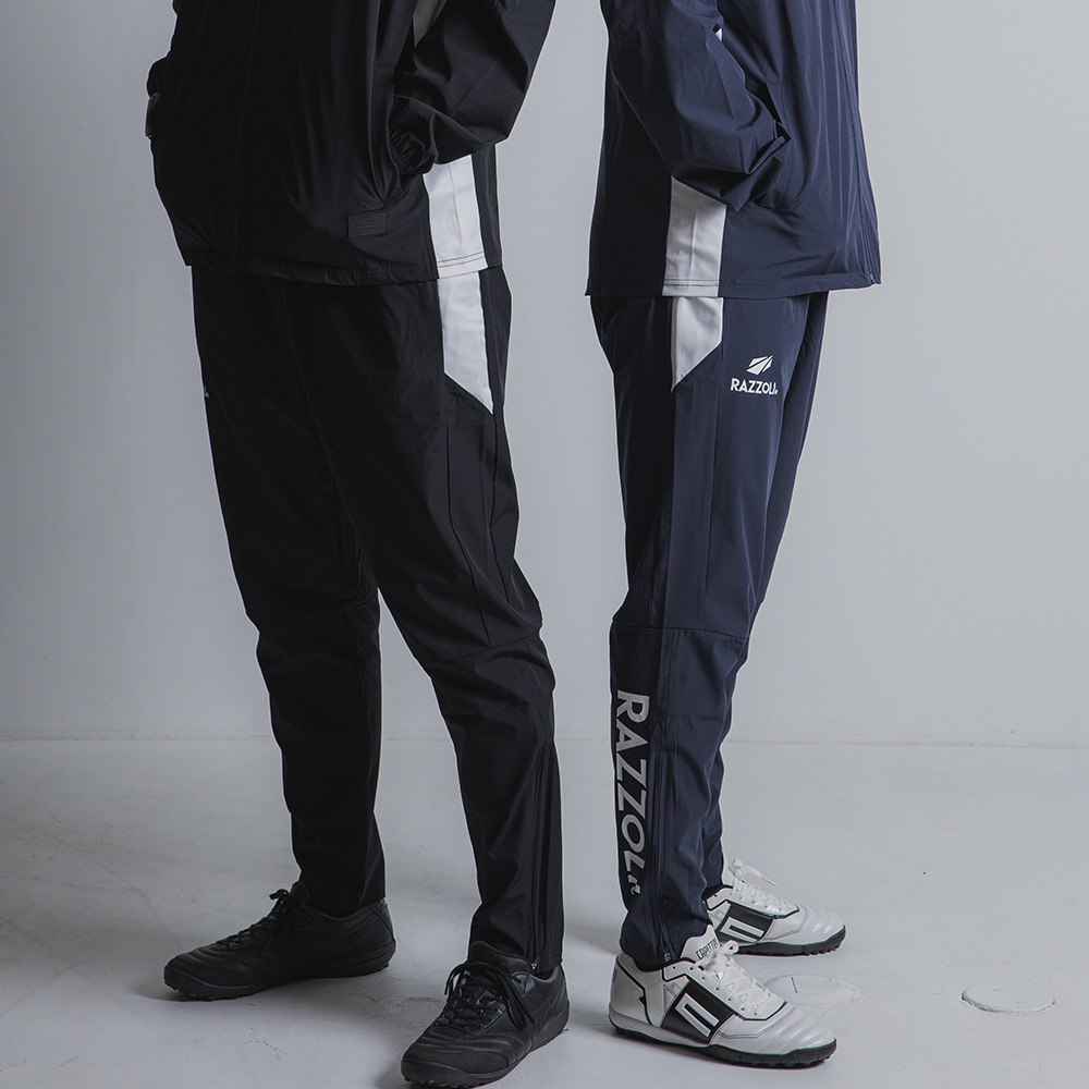 プレーの邪魔にならないよう計算されたテーパードシルエットが、生地のもたつきを解消し俊敏な動きをサポートします。シューズやスパイクを履いたままでも着脱しやすい裾のジップアップ仕様で、ピッチサイドでの待機から試合への移行もスムーズに。