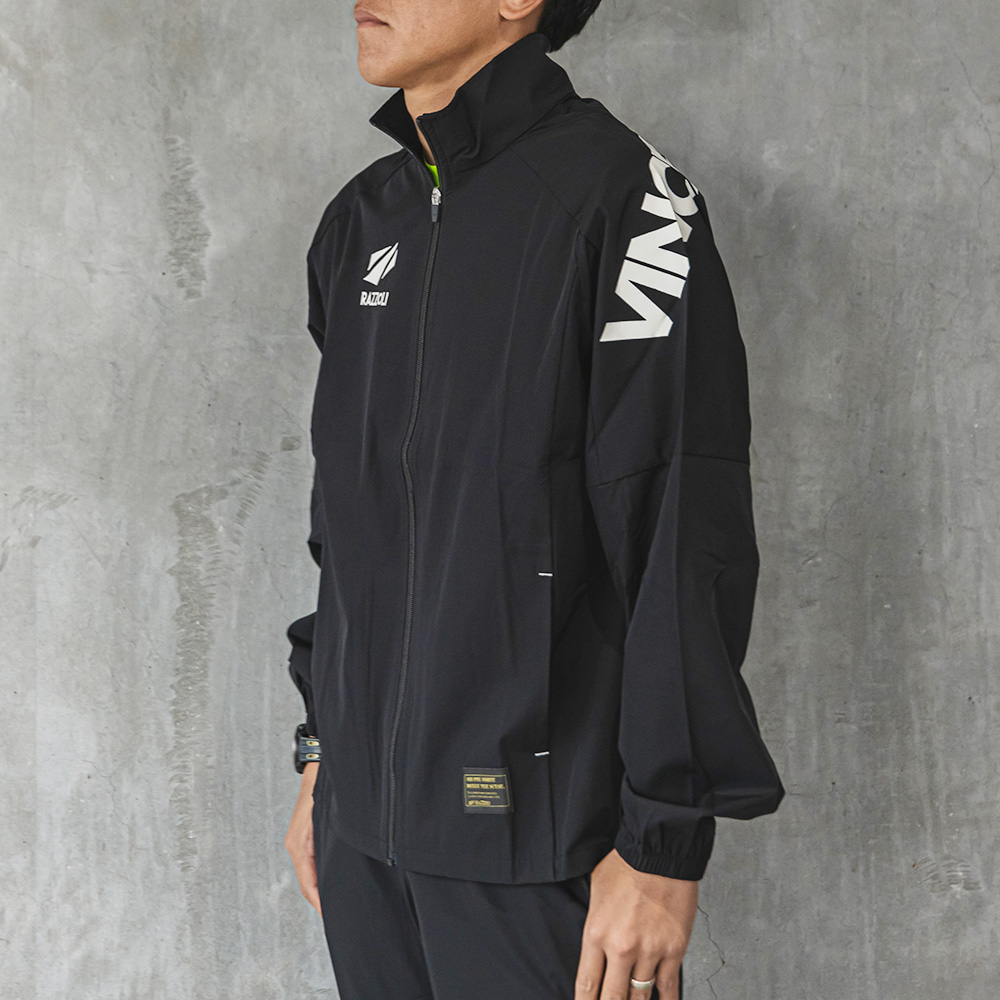 スマートなシルエットにテキストアートを加えた4WAYジャージで
