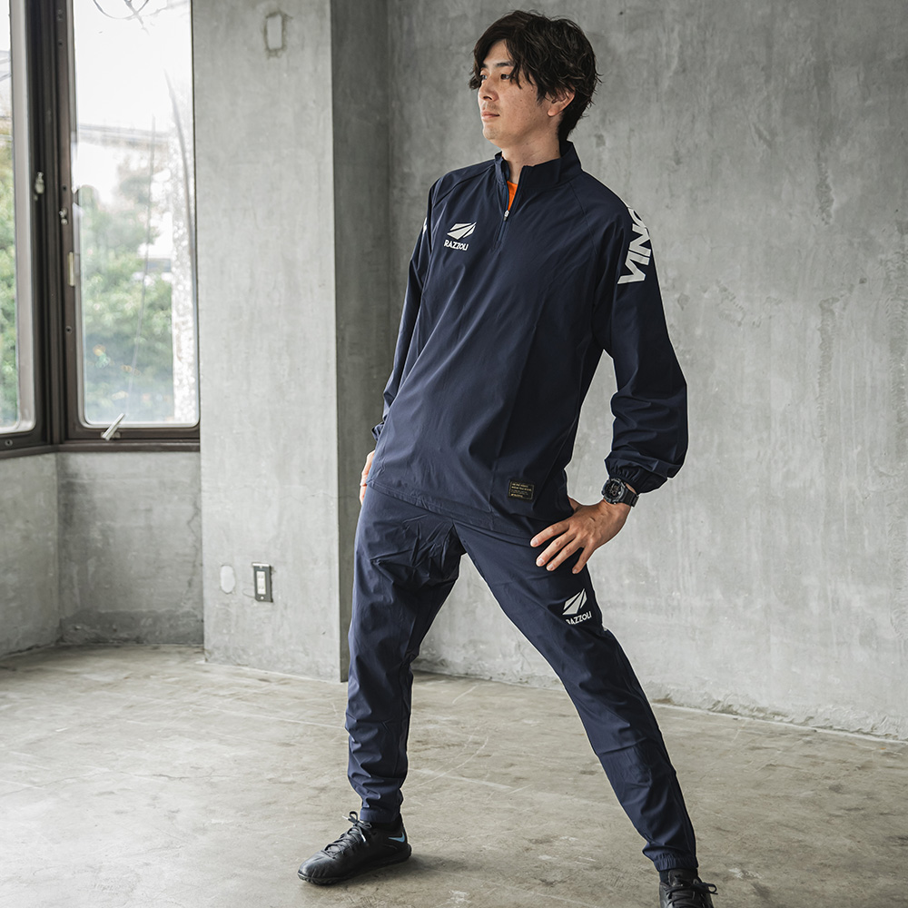 スマートなシルエットにテキストアートを加えた4WAYジャージで