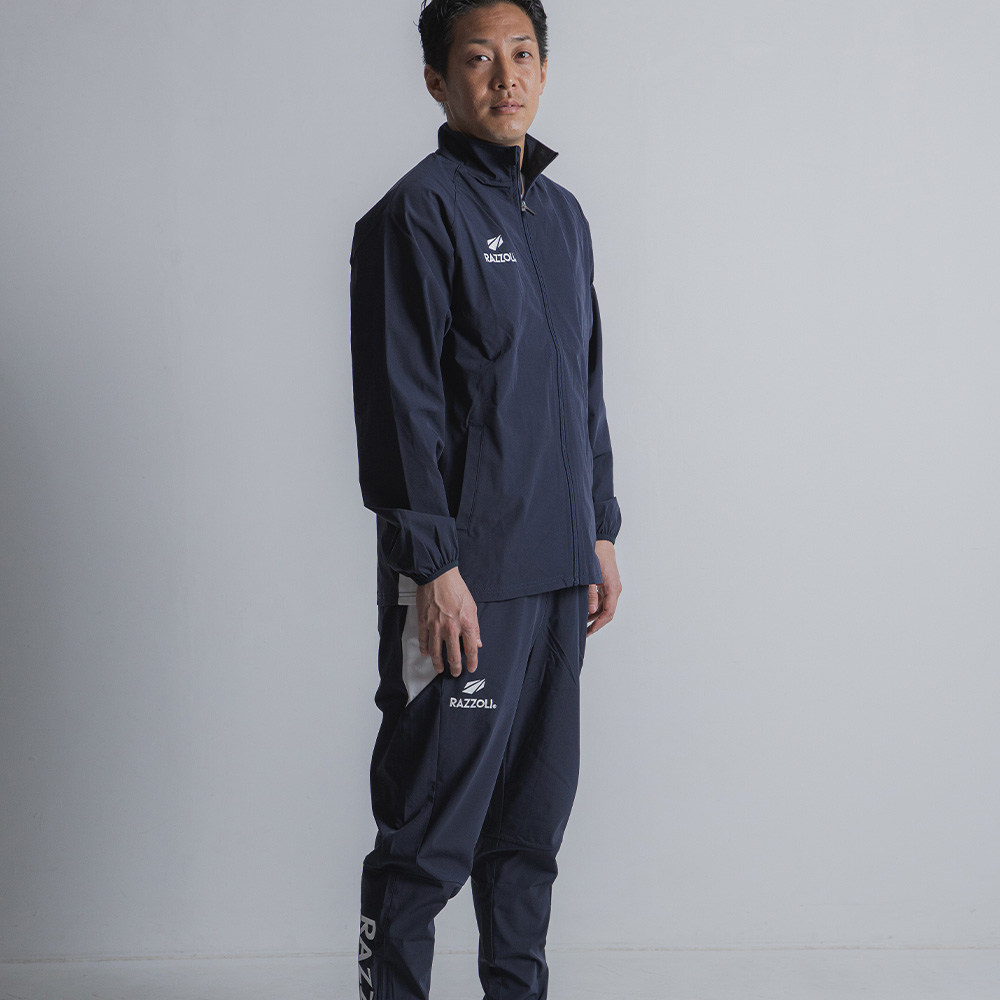 スマートなシルエットにテキストアートを加えた4WAYジャージで