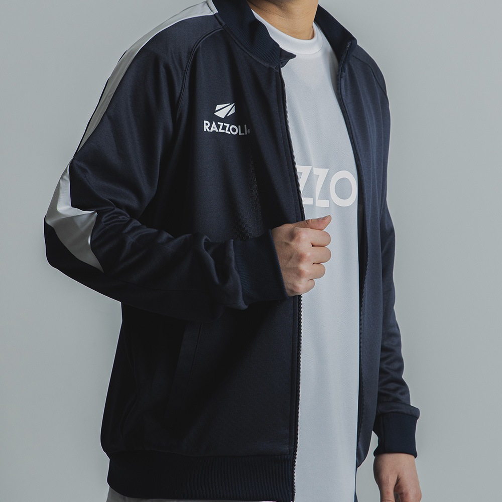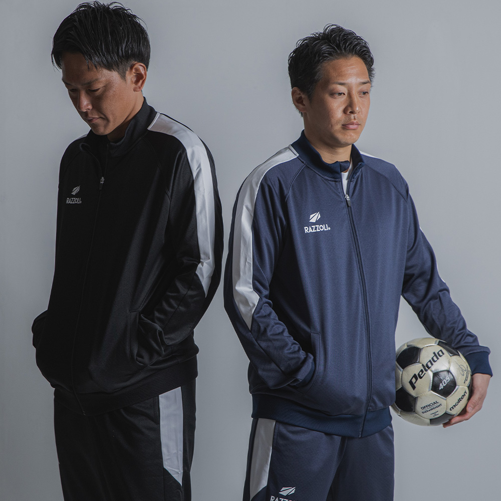 ピッチでのウォームアップはもちろん、移動時のチームウェアとしても、一体感と力強さを演出する一着です。