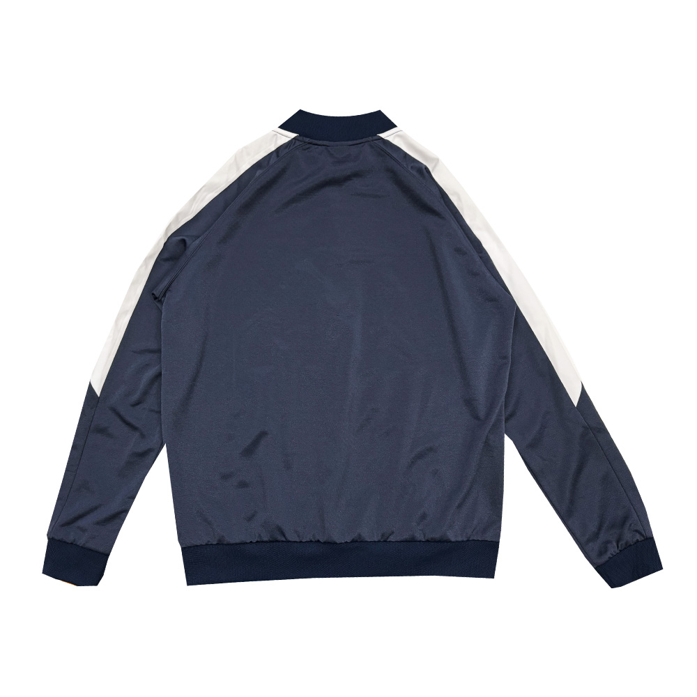 肩から袖へと伸びる太めのホワイトラインが目を惹く、オーセンティックなデザインのジャージトップです。