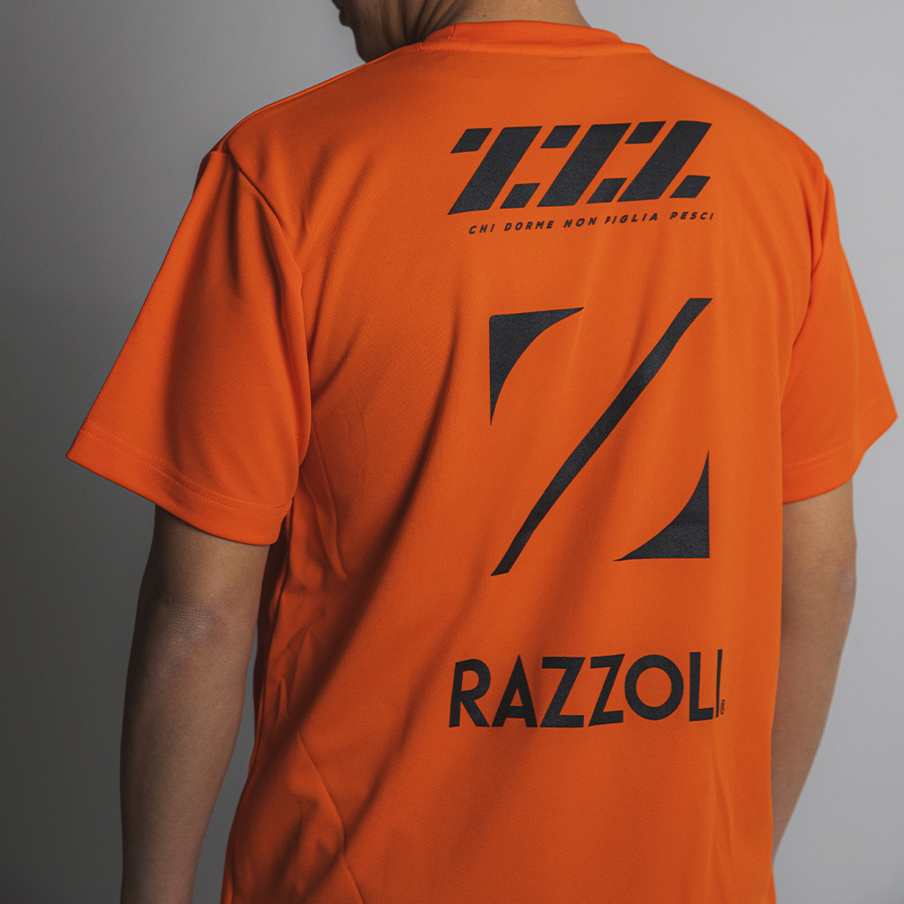RAZZOLIの象徴である鋭利なグラフィックを背負い、日々の限界を超えるためのプラクティスシャツ。